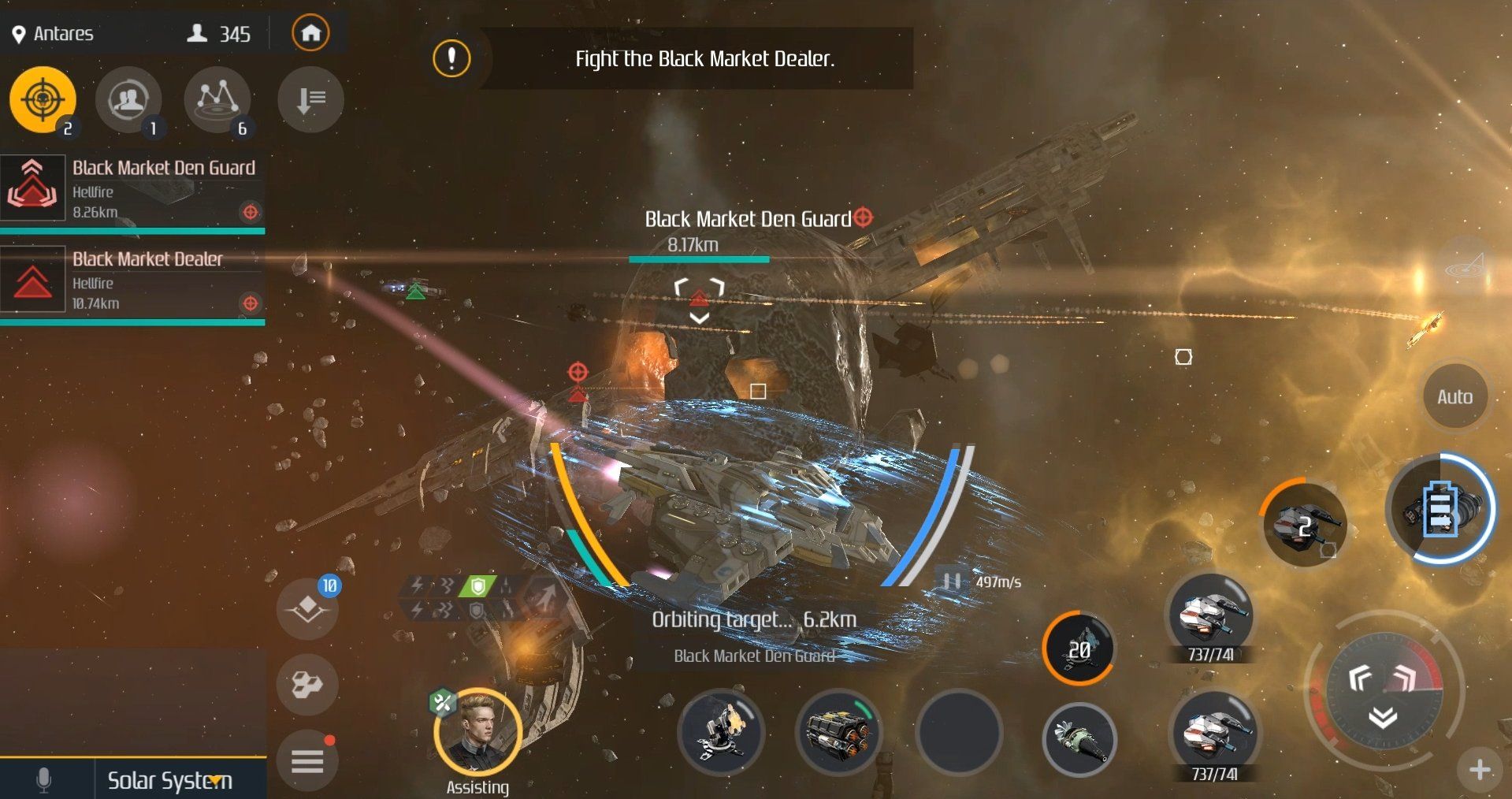 Combat in Second Galaxy is both tied to restricted by its mobile design. You don’t have the freedom to seamlessly control your ship, with your actions being limited to general commands. You can click on an enemy ship or location to automatically move in that direction, but it’s recommended to resort to the available interactions list. Clicking on the correlated button is the most straightforward way to move, talk, fight or interact with what’s around you.